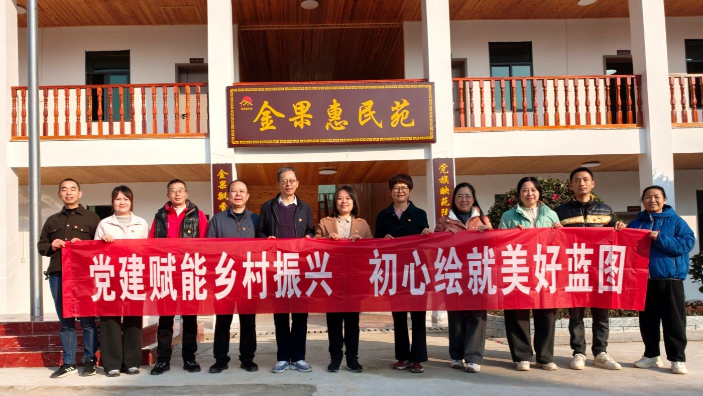支部一行首先走进学校乡村振兴驻点乐安铺乡大冻村,实地参观罗汉果产业基地、旅游河道改造现场和更新美化后的村部,了解大冻村在乡村振兴方面取得的成果。校长仇怡为大冻村“金果惠民苑”进行了揭牌。